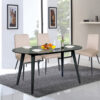 – Bàn ăn mặt chữ nhật bo tròng 4 góc bằng kính, có 4 chân khung thép mạ có ngăn bàn