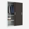 - Tủ bao gồm 03 khoang 04 cánh mở và 01 ngăn kéo trượt. Các ngăn đều có ngăn đợt di động và xà treo quần áo, cánh tủ có gương soi, ngăn hộc tủ có khóa mã két an toàn